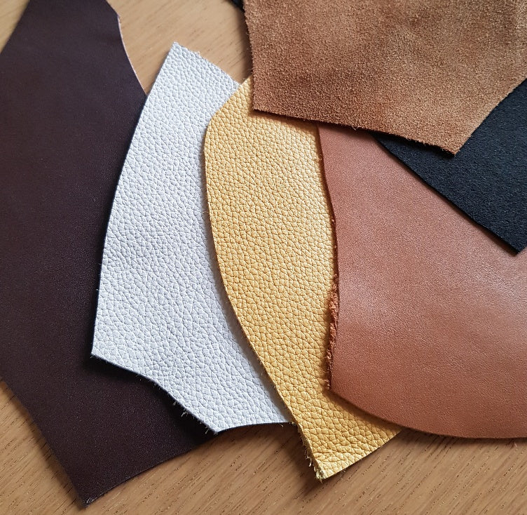 Cuir marin de saumon, tannage végétal, en provenance de tanneries françaises. Cuir de Vachette lisse pleine fleur en provenance de tanneries italiennes certifiées LWG GOLD.
